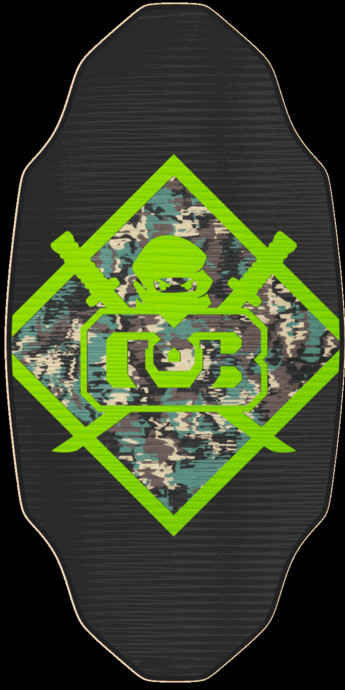 Custom Sacramento Large DB Skimboard | Flex - Stiff with Black HPL, Black Foam and Ninja Logo Art: Camo Foam, Lime Green Foam