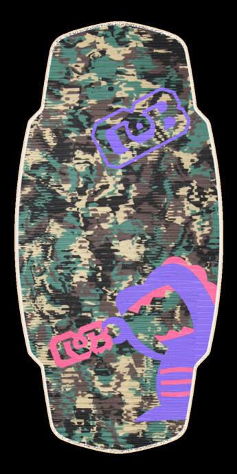 Custom Thomas Medium 40.4" DB Skimboard | Flex - Stiff with White HPL, Camo Foam and Dino Logo Art: PURPLE FOAM, PINK FOAM, PURPLE FOAM