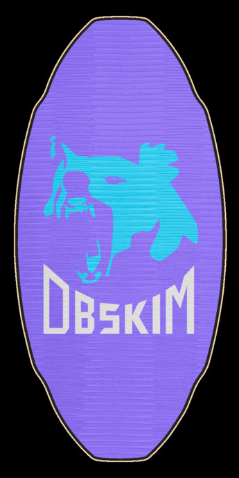 Custom Sacramento Medium DB Skimboard | Flex - Stiff with Black HPL, Blue Marble Foam and Wolf Logo Art: PURPLE FOAM, LIGHT BLUE FOAM