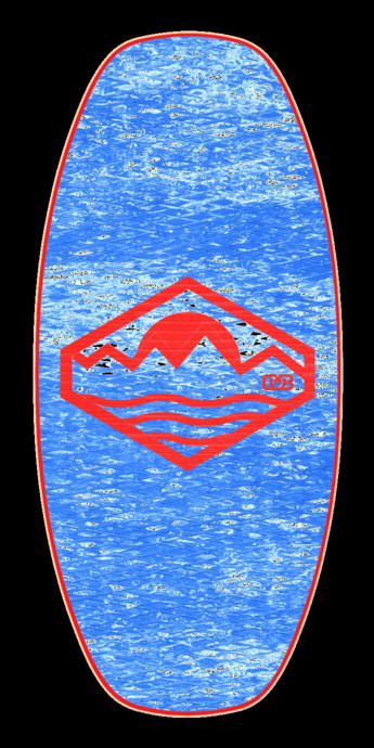 Custom Streamline Medium DB Skimboard | Flex - Flexy with Red HPL, Blue Marble Foam and NW Seascape Art: RED FOAM, Blue Marble Foam, RED FOAM, Blue Marble Foam, RED FOAM
