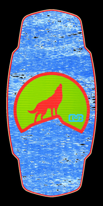 Custom Thomas Medium 40.4" DB Skimboard | Flex - Rigid with Red HPL, Blue Marble Foam and Howling Wolf Art: RED FOAM, Lime Green Foam, LIGHT BLUE FOAM